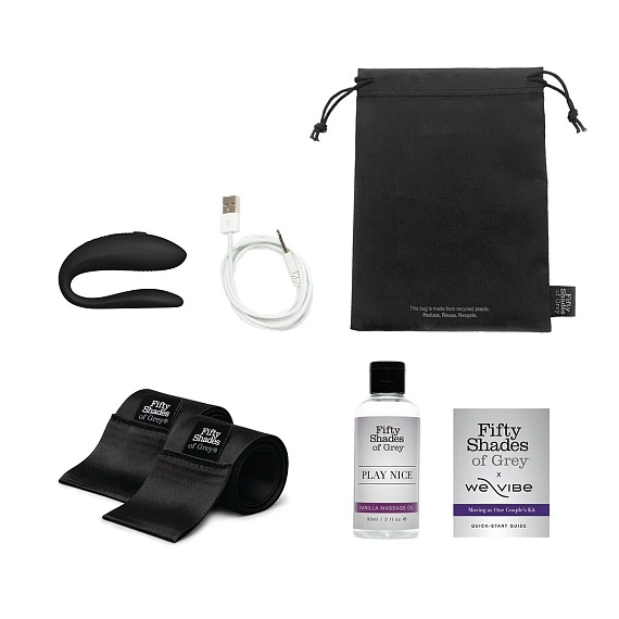 Moving As One – набор, который включает все необходимое для пикантной игры. Совместная работа Fifty Shades of Grey и We-Vibe подарит вам незабываемое удовольствие, которое вы обязательно повторите. Что в комплекте? Вибратор для пар We-Vibe Sync Lite изготовлен из безопасного для тела силикона. Гибкий корпус позволит подстроить стимулятор под особенности вашего тела. Устройство предлагает 10 режимов вибрации, которые переключаются кнопками на корпусе или с помощью приложения We-Connect. Также в набор входят атласные повязки, которые предназначены для фиксации рук или ног. Их длина составляет 126 см. Третий предмет в комплекте – это массажное ванильное масло объемом 90 мл. Соблазнительный аромат средства создаст атмосферу страсти и любви.
